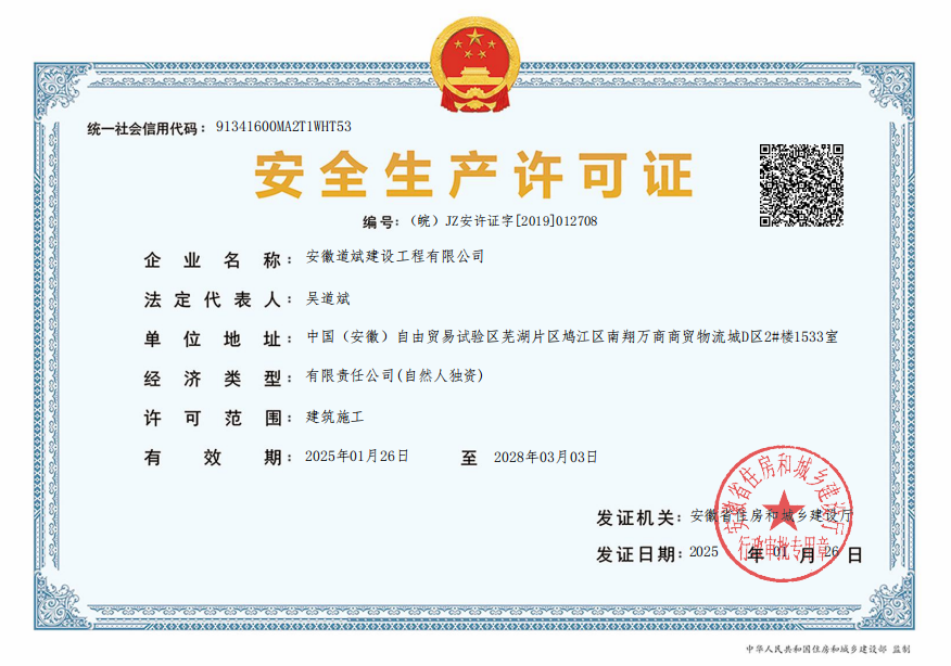 安徽道斌建設(shè)工程有限公司 版權(quán)所有 免責(zé)聲明 皖I(lǐng)CP備2021012659號(hào)-1 營業(yè)執(zhí)照